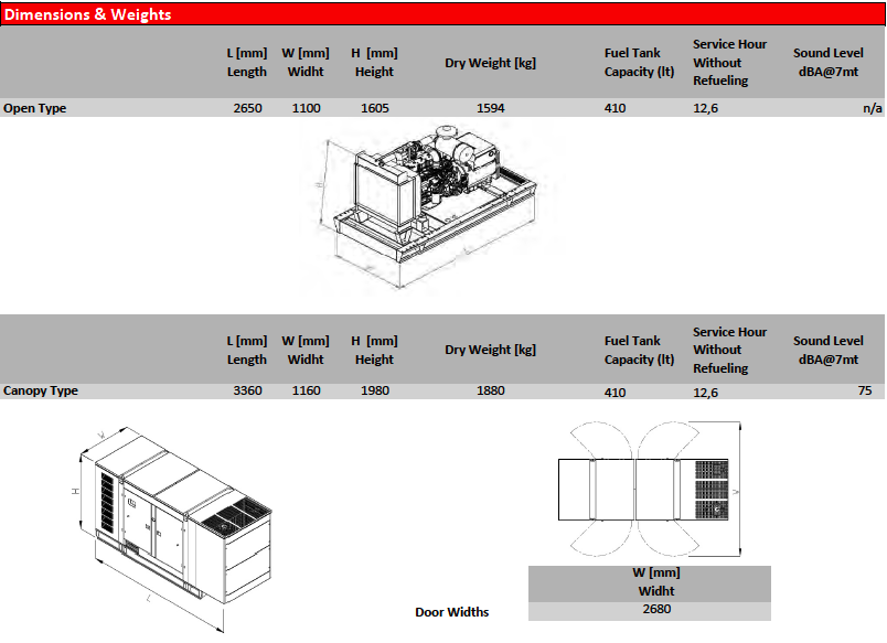 To provide sound isolation (ISO8528-10:1998) and to protect the generator from corrosive effects of external weather conditions, cabinets or containers are used depending on the size of the generator or the degree of sound intensity. Even low noise level is targeted principally, the cabins are designed in order to deliver stated power, in addition to the conditions set by ISO3046 and ISO8528, according to the tropical climate at 50C ambient temperatures, relative humidity of 30% at sea level is designed to deliver the declared power. Cabs come with a compact construction, low height, low sound level, easy access to the engine-alternator and control panel, lifting at two point, exhaust silencer stored in the cabin for safety and non-corrosion protection, and with ease of disassembly.