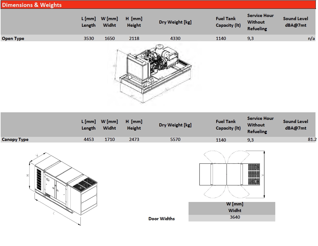 To provide sound isolation (ISO8528-10:1998) and to protect the generator from corrosive effects of external weather conditions, cabinets or containers are used depending on the size of the generator or the degree of sound intensity. Even low noise level is targeted principally, the cabins are designed in order to deliver stated power, in addition to the conditions set by ISO3046 and ISO8528, according to the tropical climate at 50C ambient temperatures, relative humidity of 30% at sea level is designed to deliver the declared power. Cabs come with a compact construction, low height, low sound level, easy access to the engine-alternator and control panel, lifting at two point, exhaust silencer stored in the cabin for safety and non-corrosion protection, and with ease of disassembly.