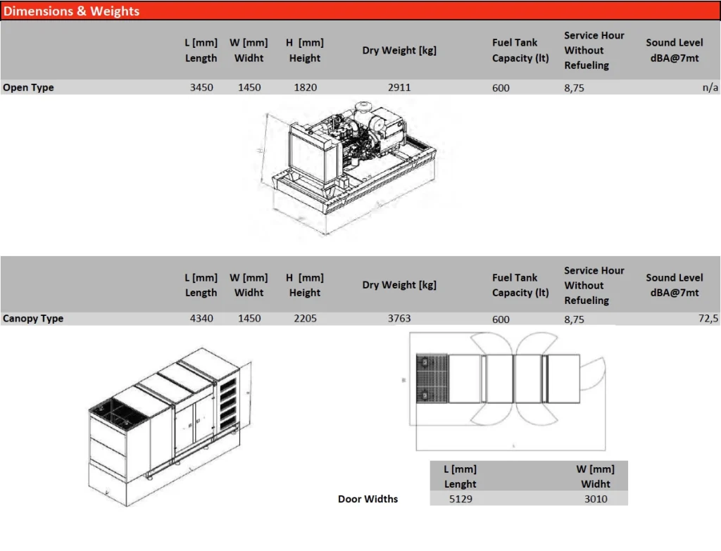 To provide sound isolation (ISO8528-10:1998) and to protect the generator from corrosive effects of external weather conditions, cabinets or containers are used depending on the size of the generator or the degree of sound intensity. Even low noise level is targeted principally, the cabins are designed in order to deliver stated power, in addition to the conditions set by ISO3046 and ISO8528, according to the tropical climate at 50C ambient temperatures, relative humidity of 30% at sea level is designed to deliver the declared power. Cabs come with a compact construction, low height, low sound level, easy access to the engine-alternator and control panel, lifting at two point, exhaust silencer stored in the cabin for safety and non-corrosion protection, and with ease of disassembly.