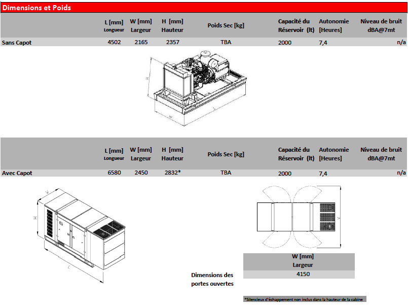 Température gaz d’échappement (50 Hz/Prime) [°C]N/A