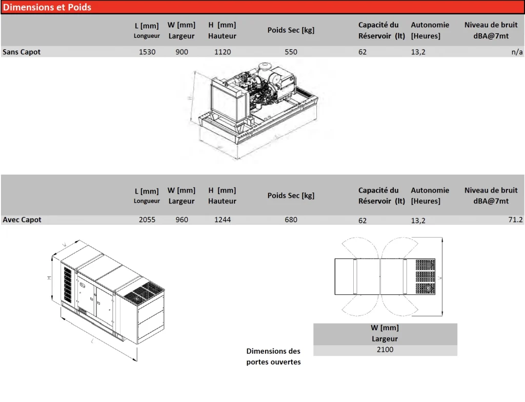 Température gaz d’échappement (50 Hz/Prime) [°C]≤700