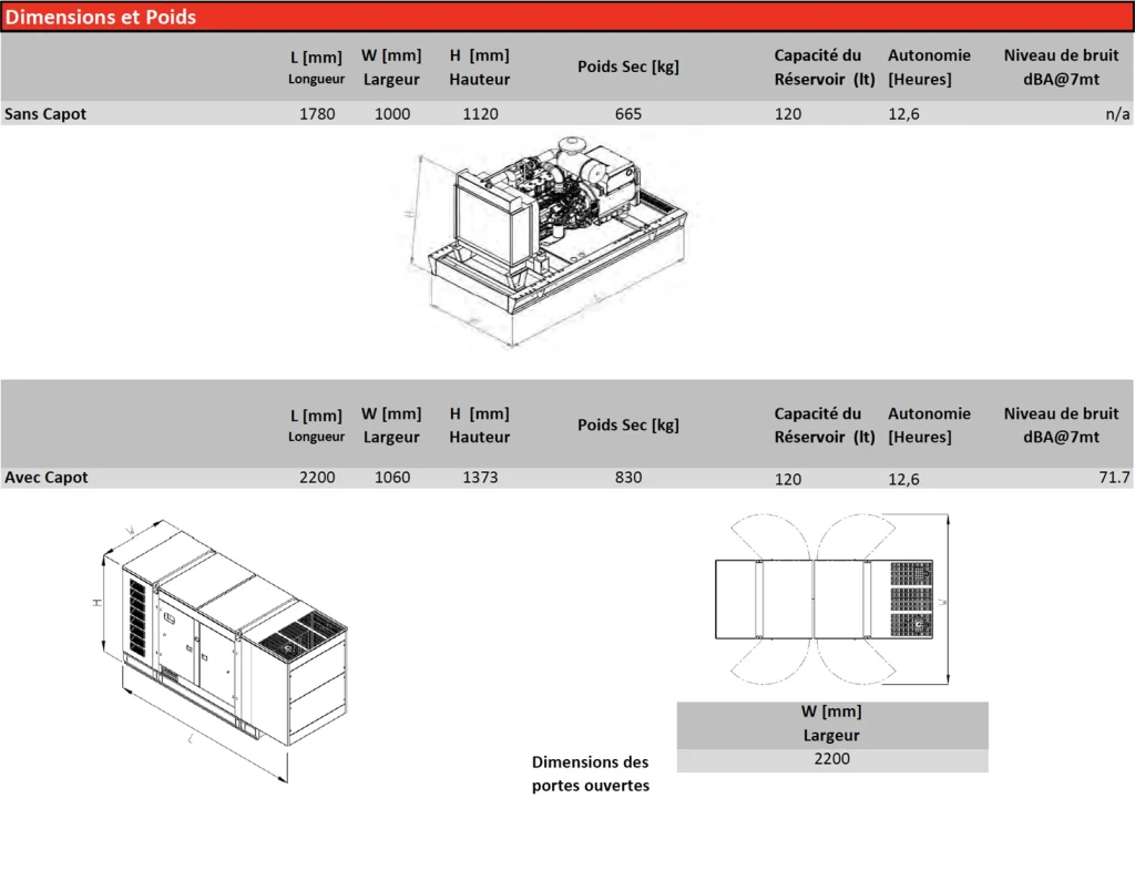 Son alternateur NEKRA ARK 184J offre un rendement de 89,5 %, une régulation de tension de ±1 % et un THD < 5 %, garantissant une alimentation électrique constante et propre. Construit conformément aux normes ISO 8528 et ISO 3046, le ARK-B 45 N5 fonctionne à 71,7 dBA et bénéficie d’une garantie de 2 ans ou 1000 heures, ce qui en fait une solution idéale pour les applications d’énergie continue et de secours.