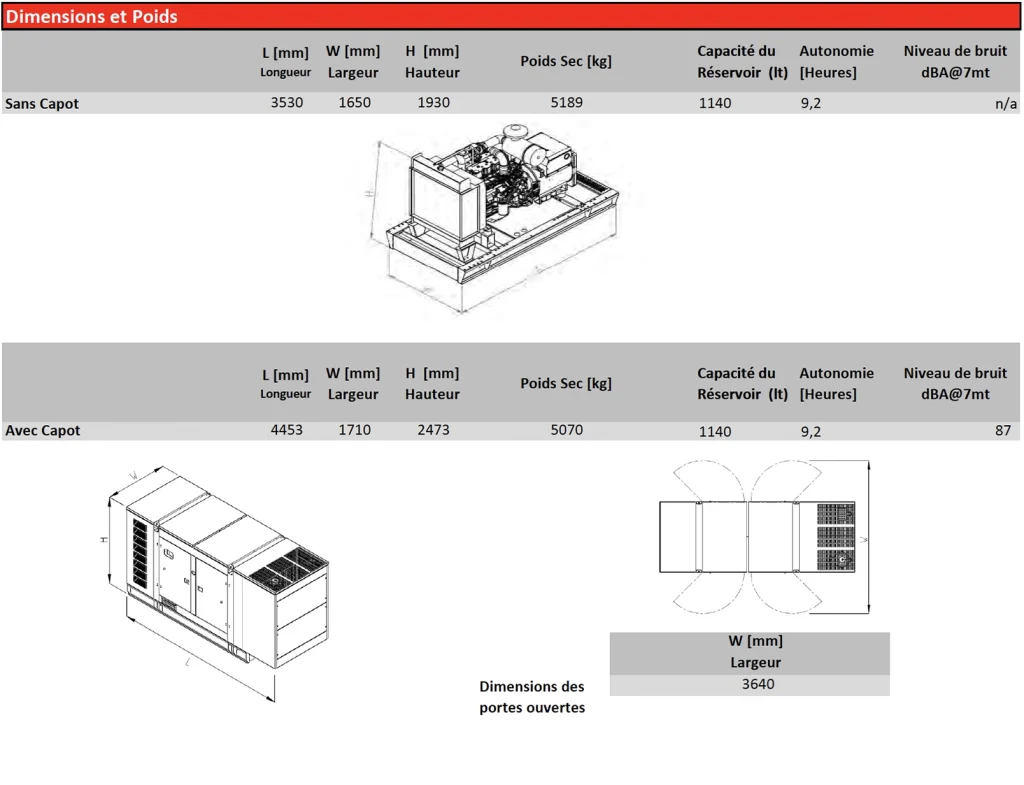 Débit gaz d’échappement (50 Hz/Prime) [m3/min]110,3
