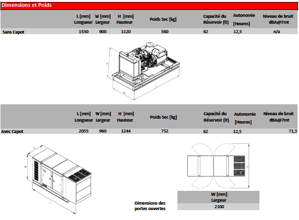 Certifié ISO 8528, silencieux à 71,3 dBA et garanti 2 ans / 1000 heures, il constitue une solution durable et fiable pour une utilisation continue ou de secours.