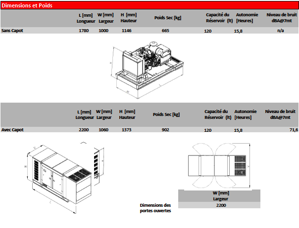 Certifié ISO 8528, silencieux à 71,6 dBA et garanti 2 ans / 1000 heures, il assure une fiabilité optimale même dans des conditions d’exploitation exigeantes.