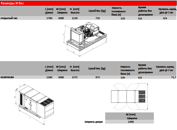 Для обеспечения звукоизоляции (ISO8528-10: 1998) и защиты генератора от коррозионного воздействия внешних погодных условий используются шкафы