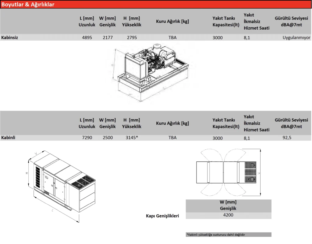 Ses izolasyonu sağlamak (ISO8528-10:1998) ve jeneratörü dış hava şartlarının korozif etkilerinden korumak için jeneratörün büyüklüğüne veya ses şiddetinin derecesine göre kabin veya konteyner kullanılır. Kabinler tasarlanırken öncelikli sadece ses seviyesi olarak hedeflenmiş, de yine ISO3046 ve ISO8528 standartlarında belirlenmiş olduğu koşullara ilave olarak Tropikal iklimde ve 50°C ortam sıcaklığında, %30 bağıl nem değerinde ve deniz seviyesinde jeneratör, beyan edilen gücü verecek şekilde dizayn edilmiştir. Kabinler, kompakt yapı, düşük yükseklik, düşük ses seviyesi, motor-alternatör ve kontrol panosuna kolay erişim, iki noktadan kaldırma, güvenlik ve paslanma olmaması için kabin içerisine saklanmış egzoz susturucusu, demonte olabilme özelliği gibi özelliklere sahiptir.